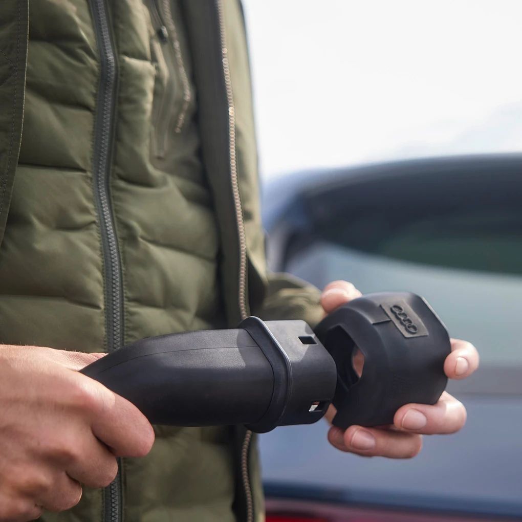 Der Audi Original Gefrierschutz verhindert bei korrektem Sitz das Eindringen von Niederschlag und verhindert das Festfrieren des Ladesteckers. Praktische Rutschhemmer an den Seiten des Gefrierschutzes erleichtern die korrekte Positionierung.